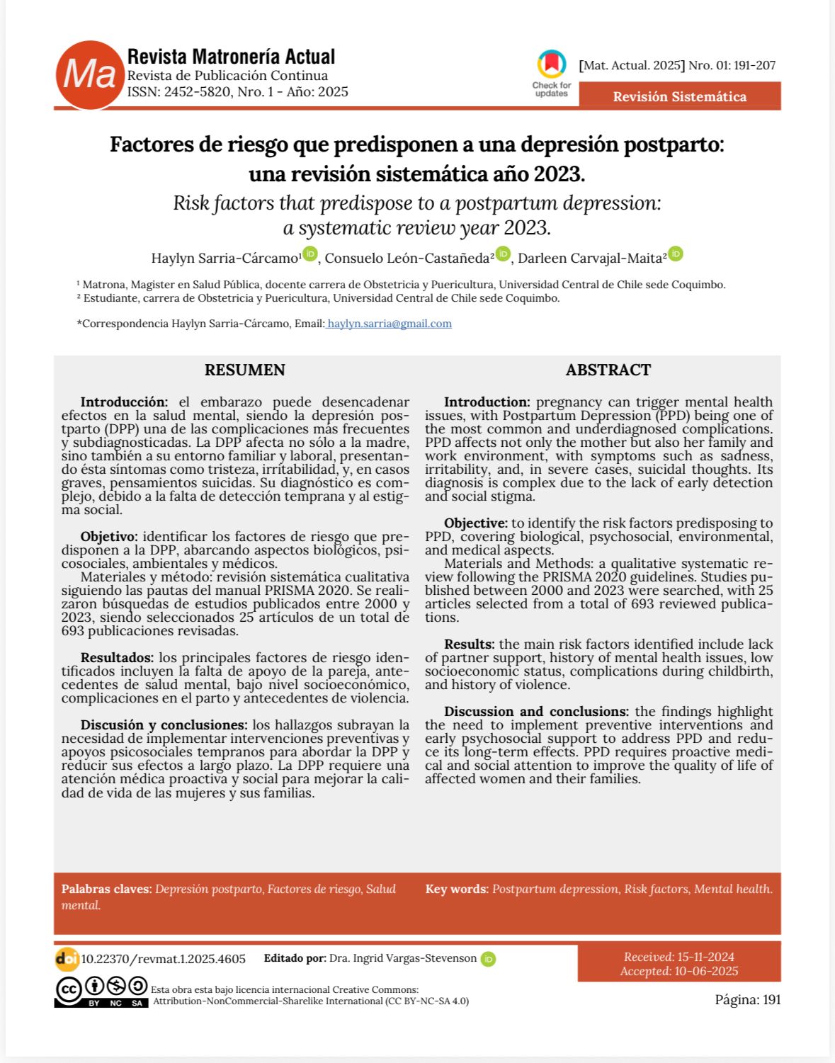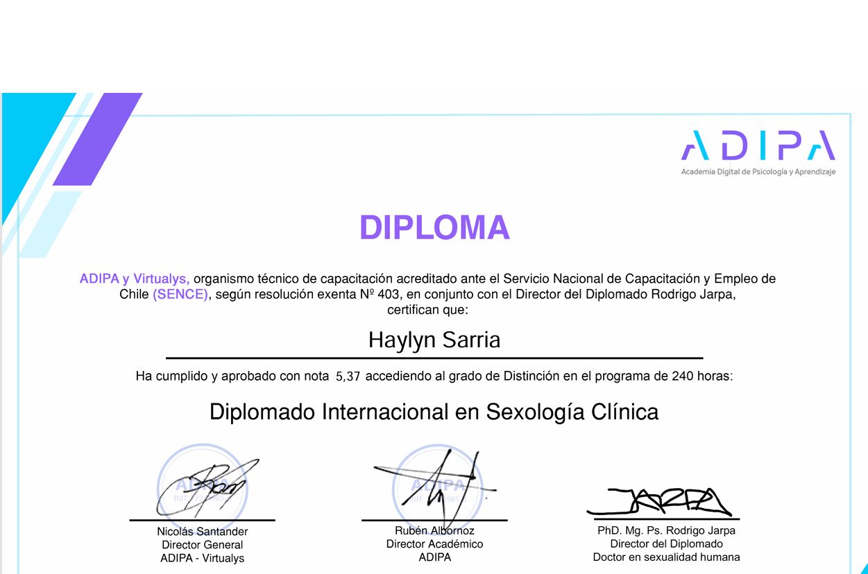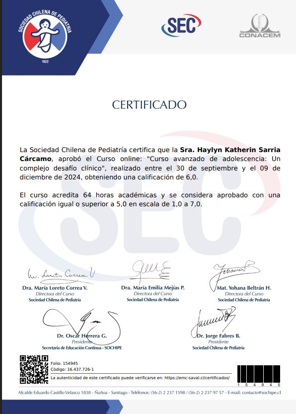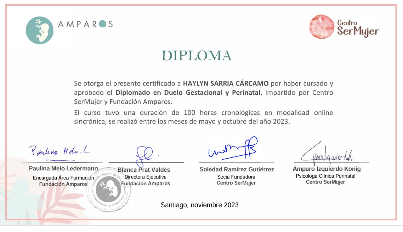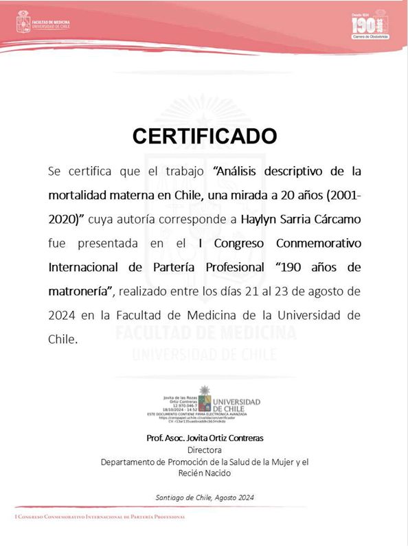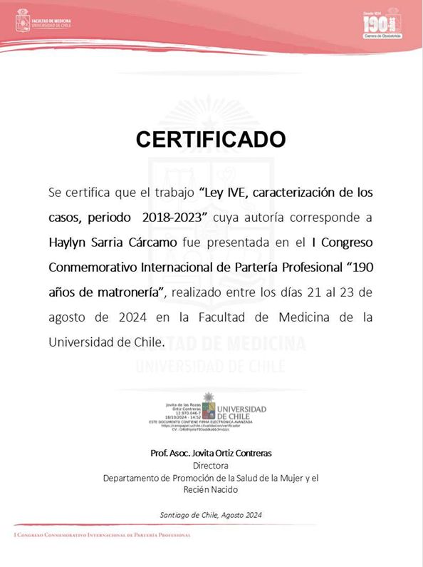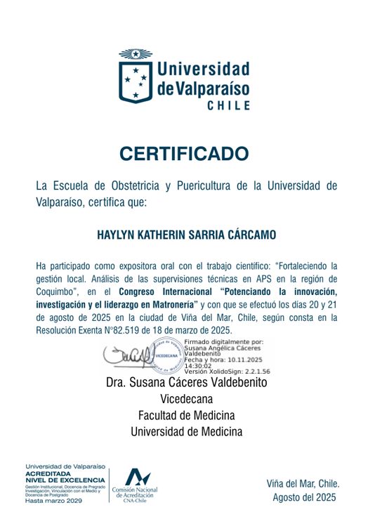Soy Matrona de la Universidad de Antofagasta y Magíster en Salud Pública con mención en Gestión por la Universidad Católica del Norte. Mi formación se ha enriquecido con diplomados en oncología, sexología clínica, duelo gestacional y perinatal, metodología de la investigación científica, docencia en educación superior, gestión de calidad y acreditación en salud, además de gestión y protocolización de cuidados.